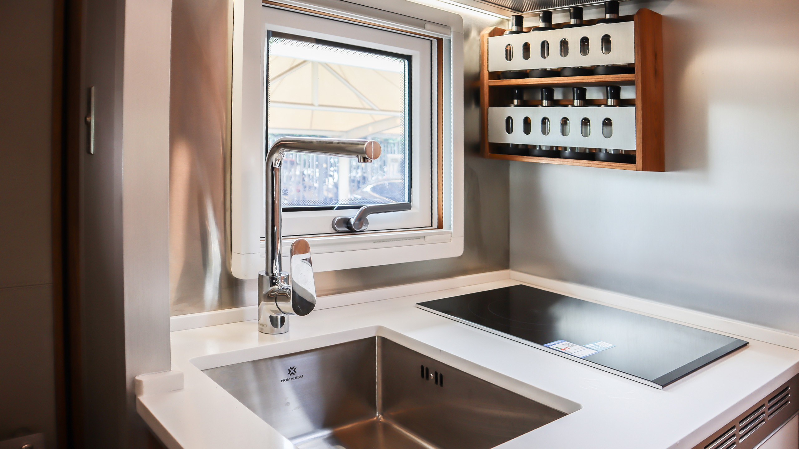 宜家风格设计,精美台面及原木色柜体,凸显轻奢品质。内嵌式西门子单眼电磁炉、隐藏式排脱油烟机,简约精致。