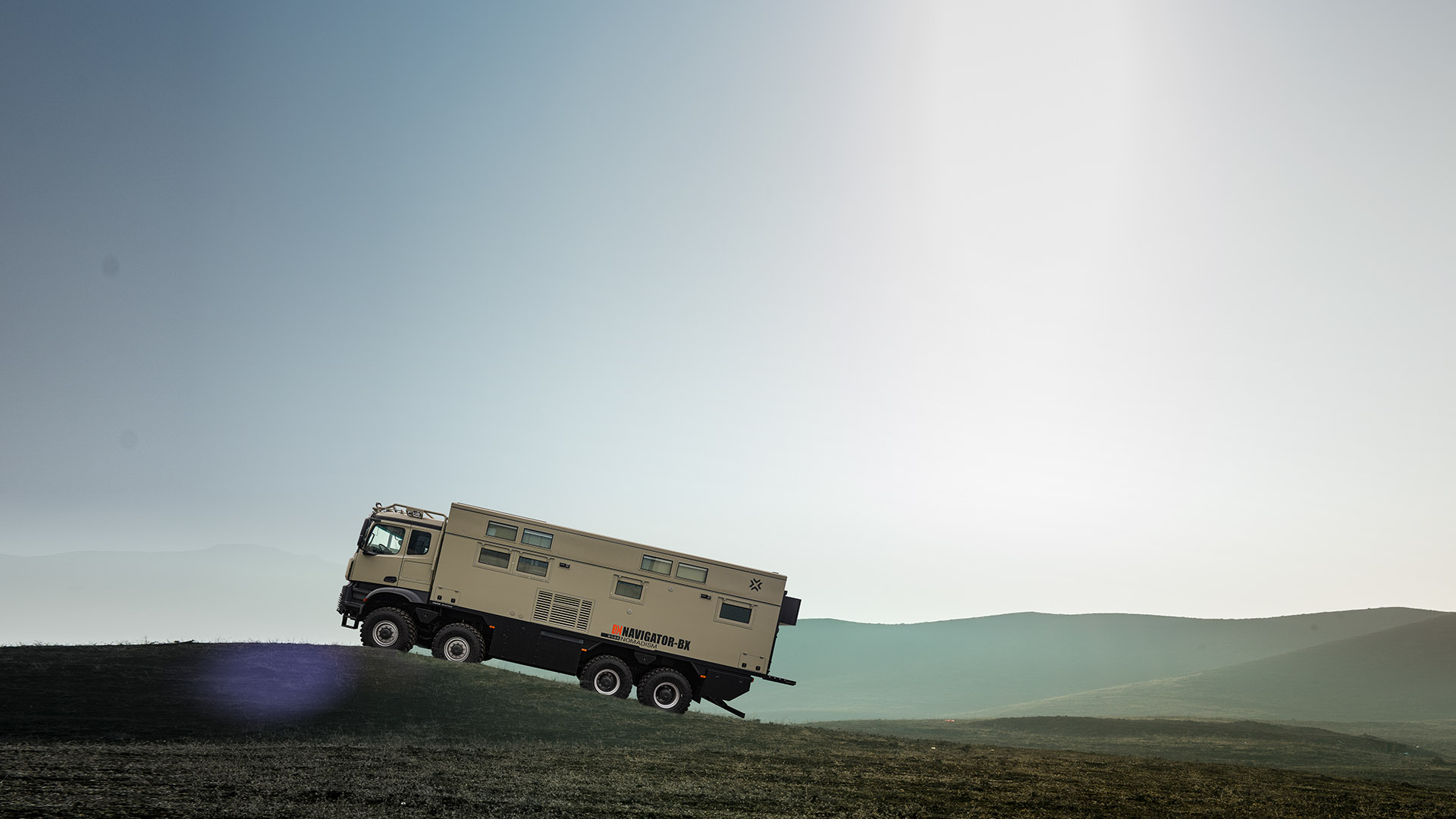 沉淀于厚积薄发, 启程于波澜不惊, 于境界之上,驾驭心灵所想! 8轮全时驱动,7把差速锁,接管泥泞。 12挡位的奔驰powershift技术全液压自动变速器,让你从容掌控、驾驭。