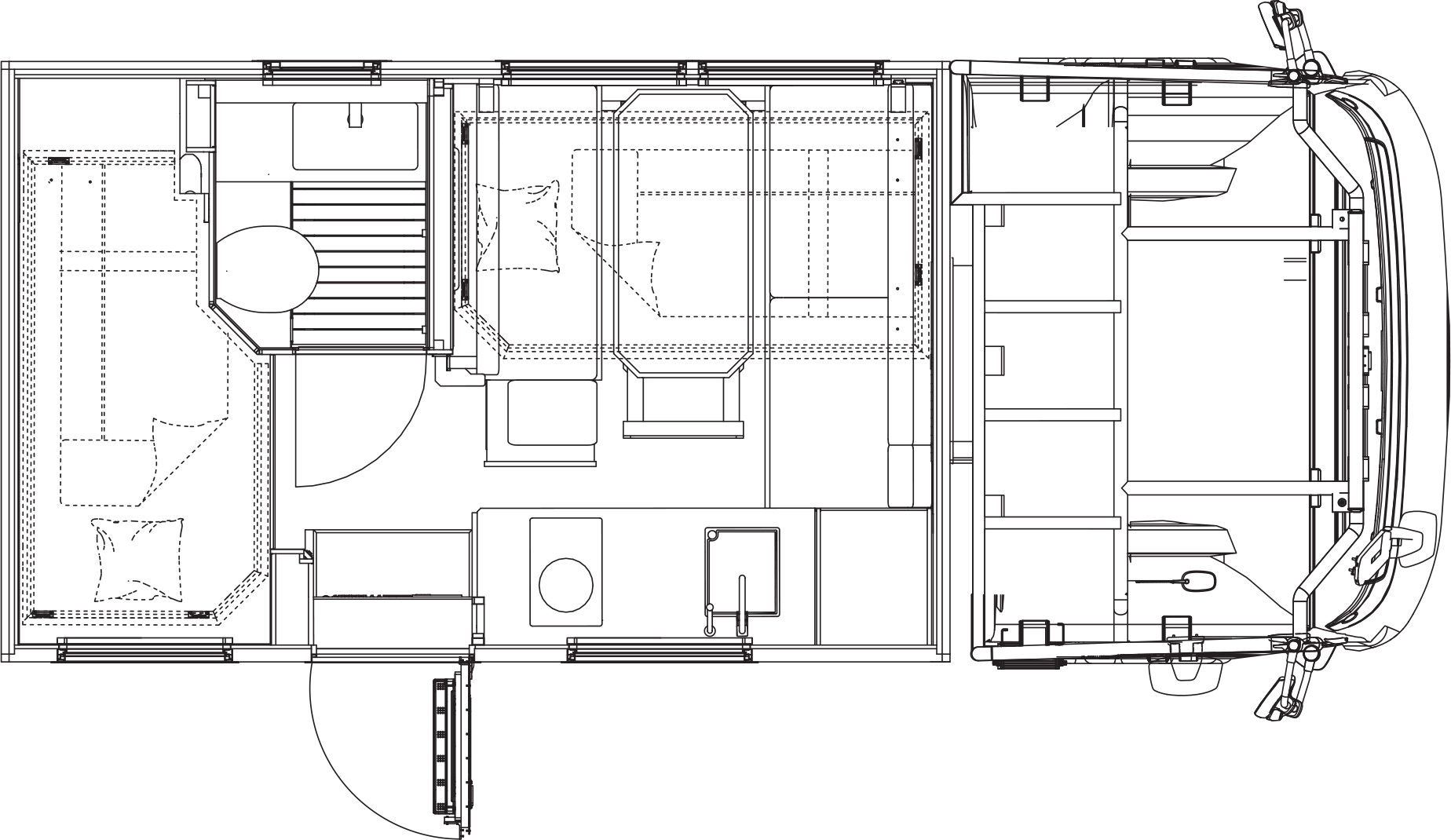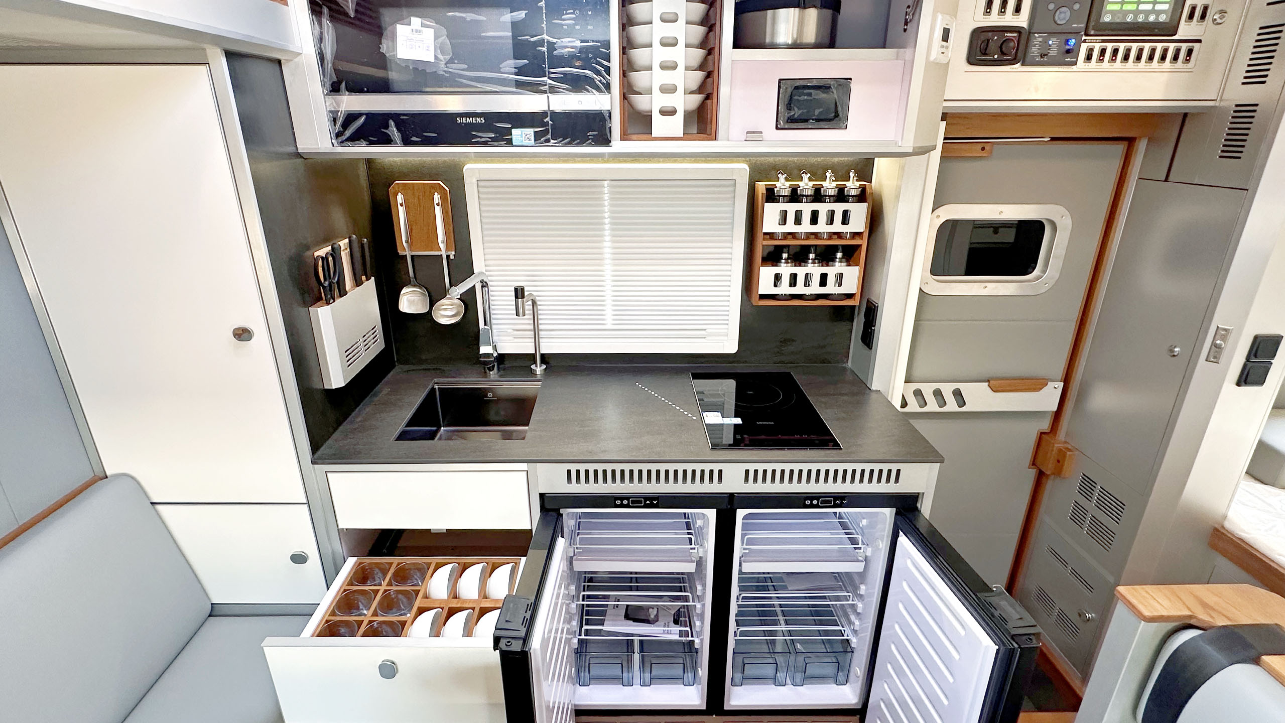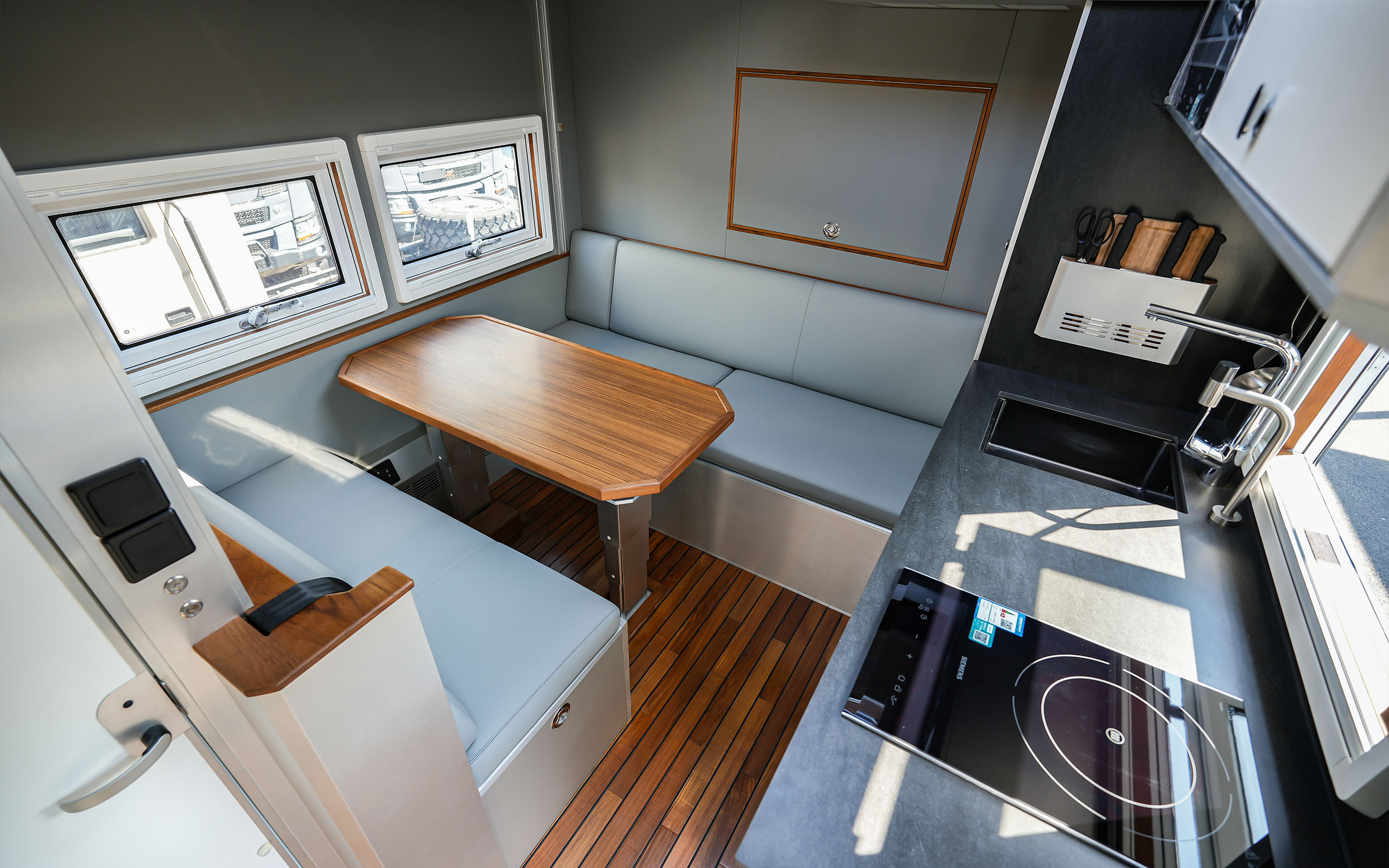 车厢尾部的独立主卧设计独具匠心,配备了1,990×1,045mm的单人床,搭配高品质的乳胶床垫,确保了深沉而舒适的睡眠体验。