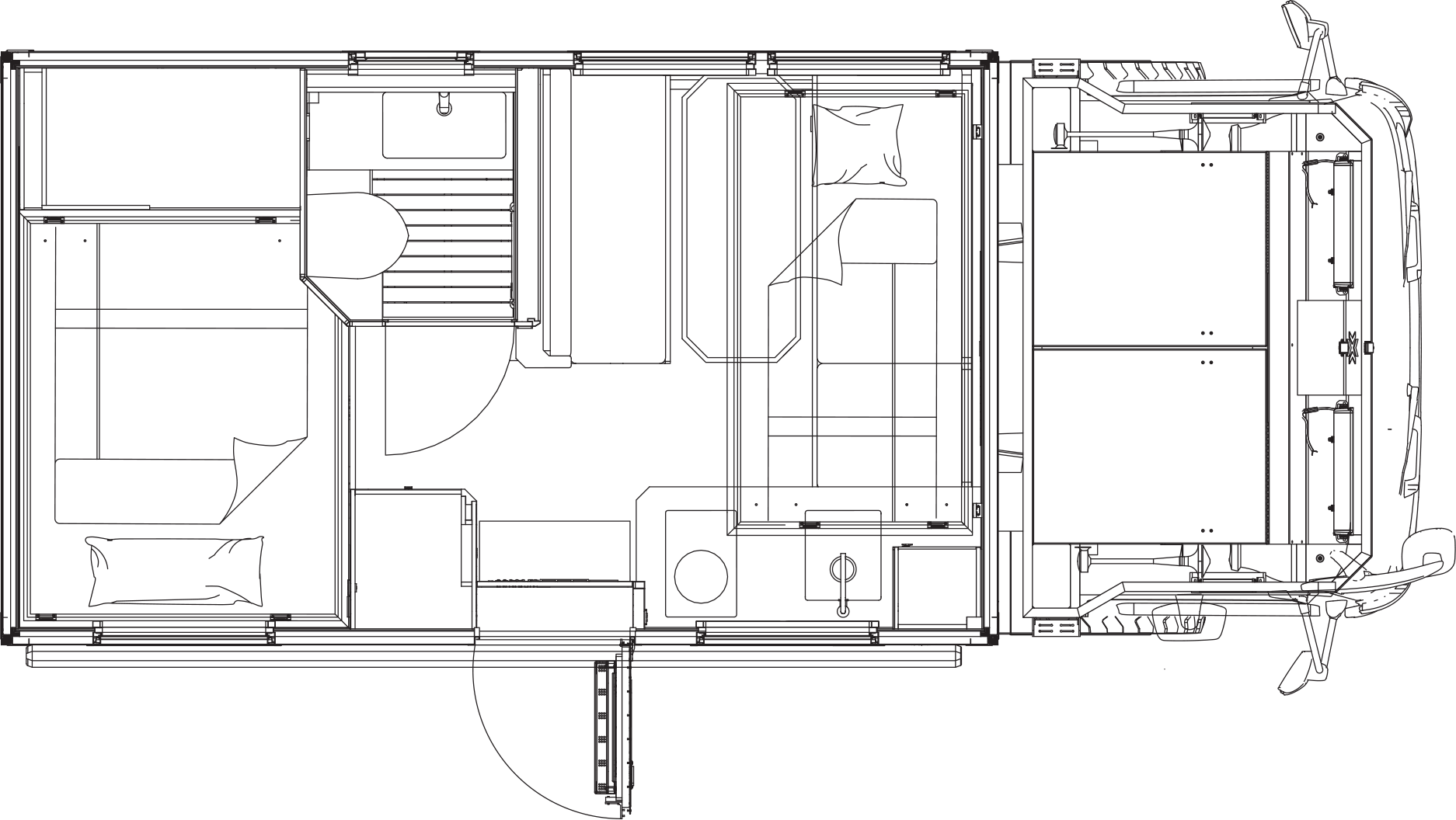 车厢尾部的独立主卧设计独具匠心,配备了2000×1400mm的双人大床,搭配高品质的乳胶床垫,每晚都能拥有甜美的梦乡。
